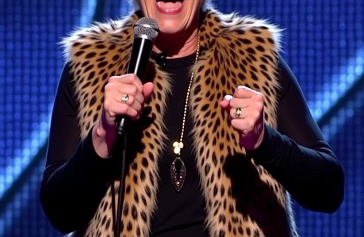 Kelly Fox took the Britain’s Got Talent stage with a presence that radiated confidence and attitude. Her bold leopard-print vest, spiky hair, and red glasses immediately signaled that she was not the type to fade into the background. As soon as she greeted the audience, her charisma filled the room.