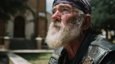 I sat in the front row in my leather vest. Other bikers came too. Big Tom. Jake. Twenty brothers who’d heard the story.