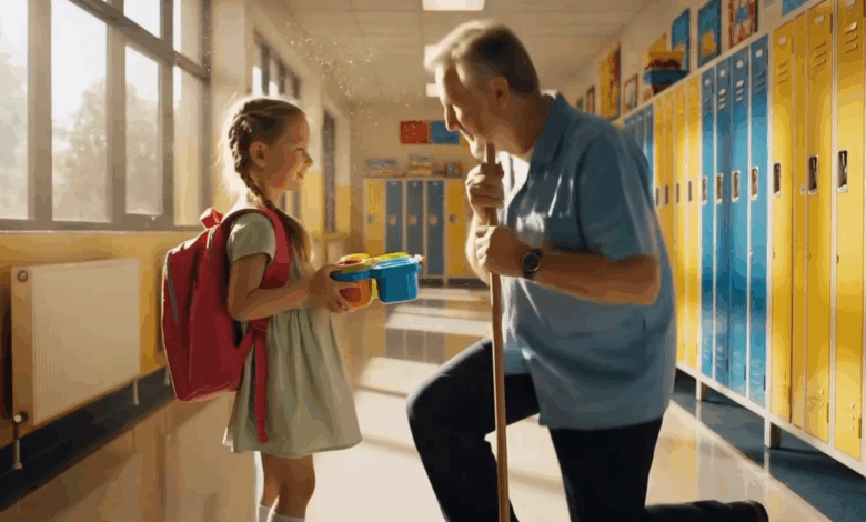 Students knew him only as the man who kept the halls clean. Few knew he had lost his wife earlier that year, or that he often skipped breakfast to save money. But one little girl had paid attention.