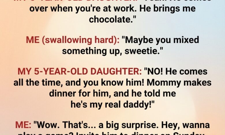 The drive home from daycare should have been ordinary, but one quiet question from my five-year-old turned the world upside down. As sunlight faded and traffic crawled, she casually asked if we could invite her “other dad” to Father’s Day dinner—the one who visited when I was at work and brought gold-wrapped chocolates. The words landed softly and then exploded in my chest. I kept my voice calm, but my hands tightened on the wheel as she explained, with childlike certainty, that it was “our secret.” In that moment, the familiar rhythm of family life cracked, and I realized something important was hidden in plain sight.
