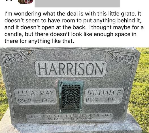 That deep connection to home is poignantly reflected in a unique cemetery marker featuring a small cast-iron grate. At first glance, the metal detail may seem unusual for a gravestone. Yet upon reflection, it feels like a heartfelt tribute—a symbolic echo of the home the deceased once cherished.