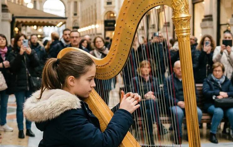 A Harp Performance Brings an Unexpected Moment of Calm to a Busy Public Space