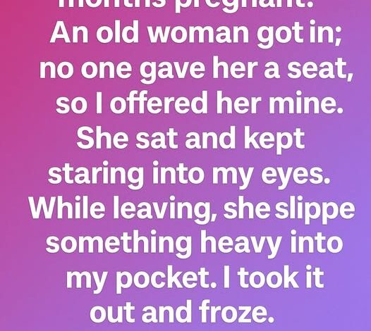 When her stop arrived, she stood slowly, pressing her palm to the pole for balance. Before she stepped toward the door, she turned back to me—not hurried, not distracted—and slipped something gently into the pocket of my coat. I blinked, surprised. She didn’t offer an explanation. She just met my eyes with a small, knowing smile, the kind that suggests a whole universe of lived experience, then stepped off the bus as if the gesture had been the most natural thing in the world.