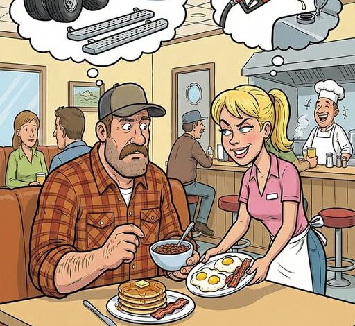 “Relax, kid. ‘Blowouts’ are pancakes, ‘high beams’ are sunny-side eggs, and ‘side steps’ are bacon. Truckers talk in parts.”