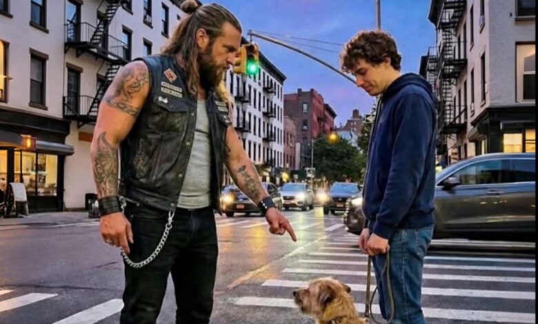 “Do it,” the biker challenged. “Please. Let’s explain to them why there’s blood on the pavement and why this dog is terrified of his own shadow. Or… you can walk away.”