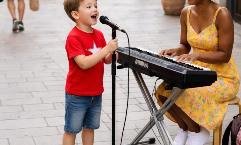 In this case, it was a young child standing beside a microphone, accompanied by a simple keyboard setup. There were no grand visuals or dramatic introduction — just a calm, almost ordinary beginning.