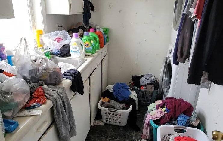 What started as a cluttered and overwhelming laundry space quickly became the focus of a transformation that many viewers found both relatable and satisfying. The room, filled with scattered clothes, household items, and visible buildup from everyday use, reflected a situation that many people quietly deal with but rarely show.
