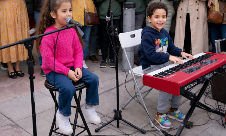 What started as a simple setup on a busy sidewalk quickly turned into something that caught everyone off guard. A very young child sat in front of a microphone, with another child beside her at a keyboard, creating what looked like a casual street performance.
