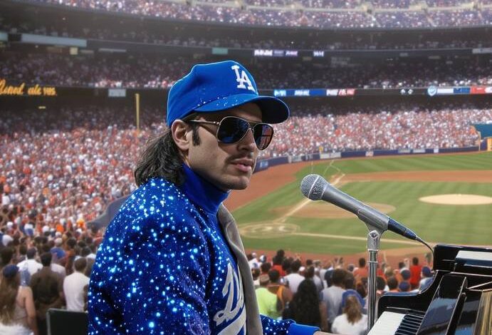 On a warm Los Angeles evening in 1975, a performer walked into Dodger Stadium wearing one of the most dazzling outfits in music history—a sequined Dodgers baseball uniform complete with matching cap. It wasn’t a baseball game that day, but something even bigger: a concert that would become one of the most iconic live shows ever staged.