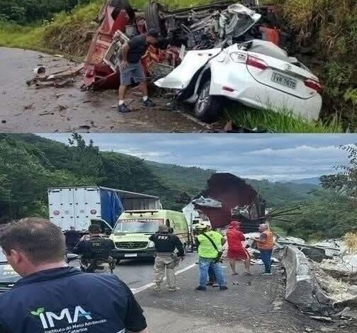 On the evening of Tuesday, May 13, 2025, at approximately 9:30 PM, a severe head-on collision between a passenger van (minibus) and a heavy-haul truck (“carreta”) resulted in a major tragedy.