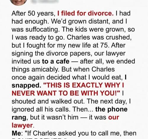 We signed the papers in the morning — fifty years of marriage reduced to signatures and silence. The lawyer, trying to be kind, suggested we grab a coffee to mark the end of things. We went out of habit, not sentiment. When the waiter came, Charles ordered for me, like always.