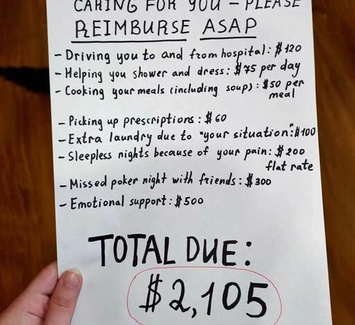 “Itemized Costs of Caring for You — Please Reimburse ASAP.”
