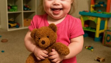 She looked up at him, her cheeks flushed pink, eyes wide but not frightened — more embarrassed than anything. And then, to everyone’s astonishment, she laughed.