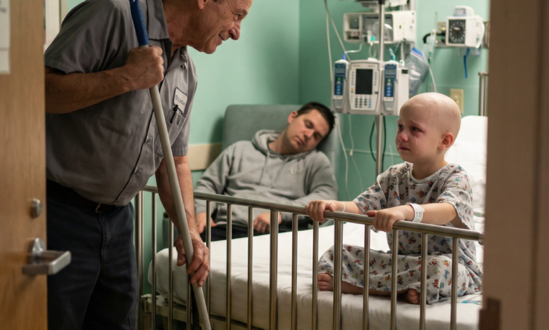 A tired one. A scared one. A room with plastic chairs, humming machines, stale coffee in a paper cup, and a janitor on his knees pretending a mop bucket was alive.