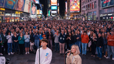 He Looked So Calm Singing In The Middle Of Times Square At Night… Until His Voice Hit And The ENTIRE Crowd Froze 😳🔥