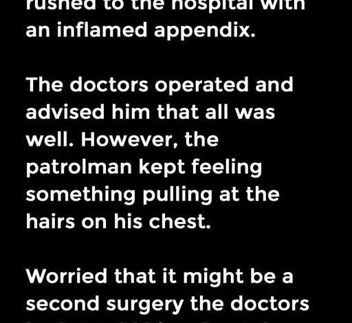 The doctors operated and advised him that all was well. However, the patrolman kept feeling something pulling at the hairs on his chest.