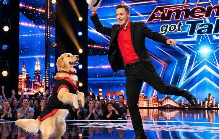 At first glance, the act appeared playful and lighthearted. A performer dressed in a black suit jacket and bold red shirt walked onto the America’s Got Talent stage alongside his golden retriever, who was already stealing attention in a matching black outfit accented with red details. The setup suggested a fun routine — but few expected what would unfold next.