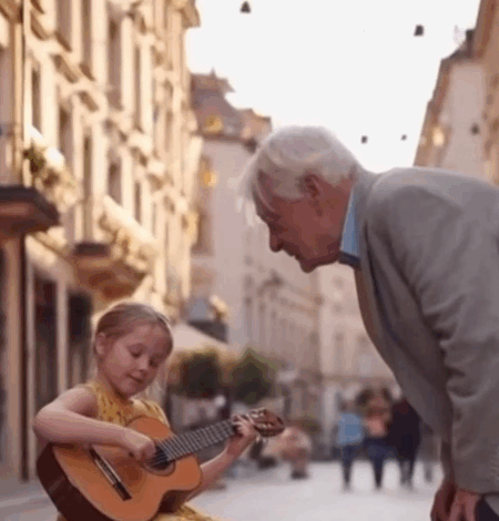 Suddenly, a new sound cut through the street noise, a voice joining the little girl’s tune. It wasn’t the professional, but an elderly man who had been standing quietly in the crowd. He began to sing with a passion that instantly captivated everyone.