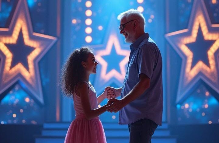 A young contestant took the stage with a confidence far beyond her age, dressed in a shimmering tap-dance outfit that sparkled under the bright lights. The audience expected a charming, energetic solo performance — until she turned toward the curtain and reached out for someone. To everyone’s surprise, her elderly grandfather stepped onto the stage beside her, smiling shyly as the audience erupted into supportive applause.