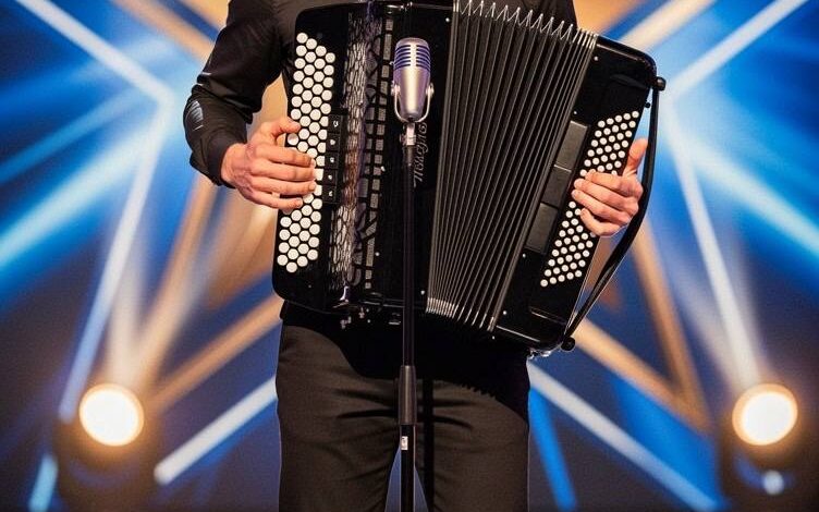 At first glance, it seemed like it would be a quiet, traditional performance. He stood calmly at the microphone, focused and composed, as the bright stage lights reflected off the black accordion strapped across his chest.