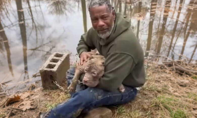 And at the other end… a dog — panicking, fighting, being yanked toward the muddy water like a trapped soul.