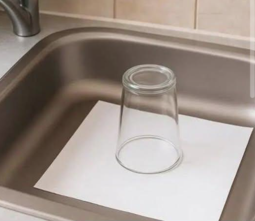 Lay a sheet of paper towel over your clean sink drain, then gently place an upside-down glass on top. That’s all there is to it.