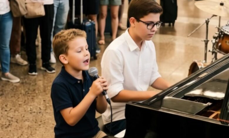A young performer stood near a piano, beginning a song that didn’t demand attention, but gently invited it. At first, only a few nearby travelers noticed. It was easy to overlook, just another sound in a busy environment.