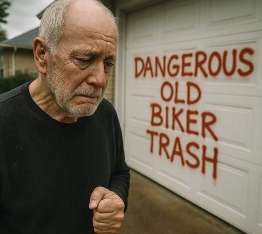 I buried my only son yesterday. Then drove home to find someone had spray-painted “Dangerous Old Biker Trash” across my garage door. Thirty years I’ve lived in this neighborhood.