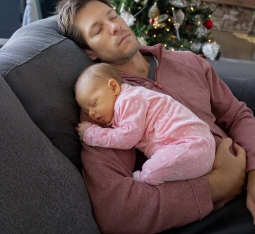 Mark was asleep on the couch, his head tilted back, his arms wrapped protectively around a tiny, bundled newborn. A real baby. Small, warm, breathing. Her fist clutched his sweatshirt as if she belonged there.