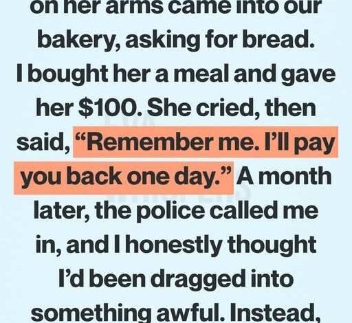 Before leaving, she brushed away tears and murmured, “Remember me. I’ll pay you back someday.”