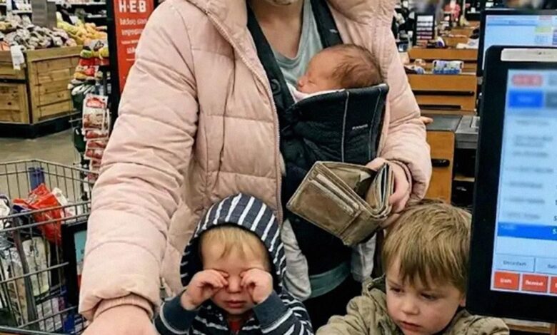 She couldn’t have been more than twenty-five. A janitor’s uniform hung loosely on her frame, name badge reading Allison. A toddler screamed from the cart. A preschooler clung to her leg. A baby squirmed in a carrier strapped to her chest. Her hands shook as she counted coins from her wallet, holding up a single can of formula like it might vanish.