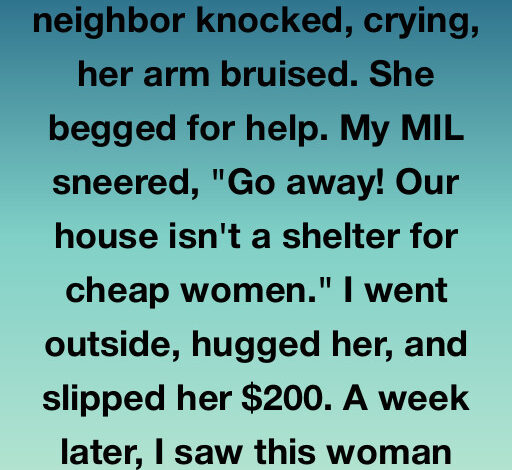 The following week was heavy and tense. My husband was away on business, leaving me alone with his mother’s icy silence and constant disapproval. I kept glancing at the house three doors down, but the curtains were always closed. The lights never came on. I started to worry the money hadn’t been enough—or that I’d unknowingly sent her back into danger.