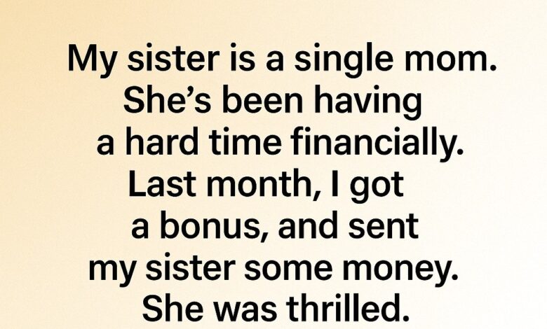 When my sister became a single mother, I made a silent vow: I would always have her back. Watching her raise her child alone, balancing long shifts, bills, and sleepless nights, filled me with both admiration and ache. She was doing everything she could, but it was clear that survival had replaced living. So when I received a work bonus last month, I didn’t hesitate. I wired her a few thousand dollars — not as charity, but as love made tangible.