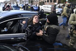 ICE agents pull a woman from a car before detaining her on January 13, 2026 in Minneapolis, Minnesota. The Trump administration has deployed over 2,400 Department of Homeland Security agents to the state of Minnesota in a push to apprehend undocumented immigrants. (Photo by Stephen Maturen/Getty Images)