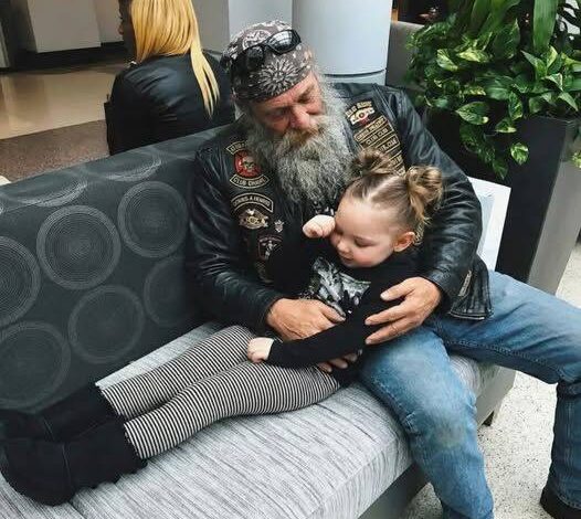 A small girl suddenly ran straight toward the roughest-looking biker in the terminal, yelling “Grandpa!” — even though I had never laid eyes on her before.