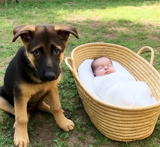 When Jack got closer, he froze. Lying in a basket on the damp grass was a baby — tiny, crying, wrapped in a thin blanket. Ralph was nuzzling her gently, as if trying to comfort her.