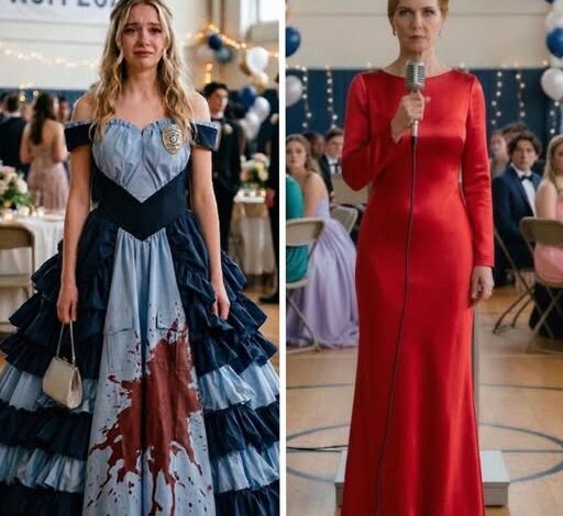 Mean Classmate Dumps Punch on Prom Dress Made from Late Policeman Uniform and the Identity of the Fallen Officer Shocks the Whole Gym