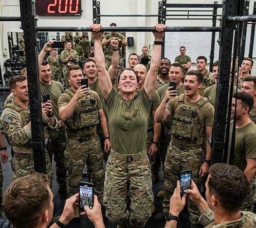 The SEALs, being men of action, recognized greatness when they saw it. The initial teasing was replaced by a rhythmic, tribal chant. Rodriguez was now the loudest voice in the room, counting each rep with a ferocity usually reserved for combat. At 120 reps, Sarah’s scrubs were soaked with sweat, and her white coat had long ago been tossed aside. At 150, her forearms began to cramp into tight, iron-hard knots, but she redistributed the strain by subtly shifting her grip and engaging her core even tighter.