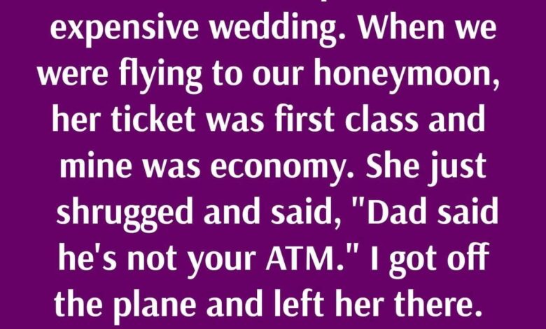 So, for our wedding, her dad paid for everything. When we got on the plane for our honeymoon, my wife was in first class, but my ticket was for economy. She just shrugged and said, ‘This sucks, but Dad says he’s not your money machine.’