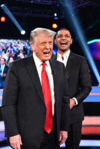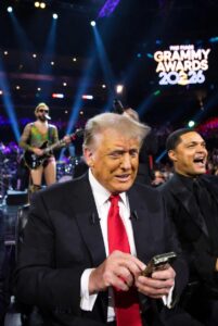 The reaction soon reached the political arena. Former president Donald Trump responded publicly, criticizing what he described as the increasing politicization of entertainment events. He also addressed remarks made by the show’s host, Trevor Noah, who delivered satirical jokes referencing political figures during the broadcast. Trump denied claims tied to those jokes and suggested he was exploring legal options, a response that quickly drew media attention and reignited debate over comedy, free expression, and public figures.