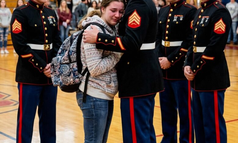 My 14-Year-Old Got Detention for Defending Her Marine Dad – When Four Men in Uniform Walked Into the School, the Entire Building Went Silent