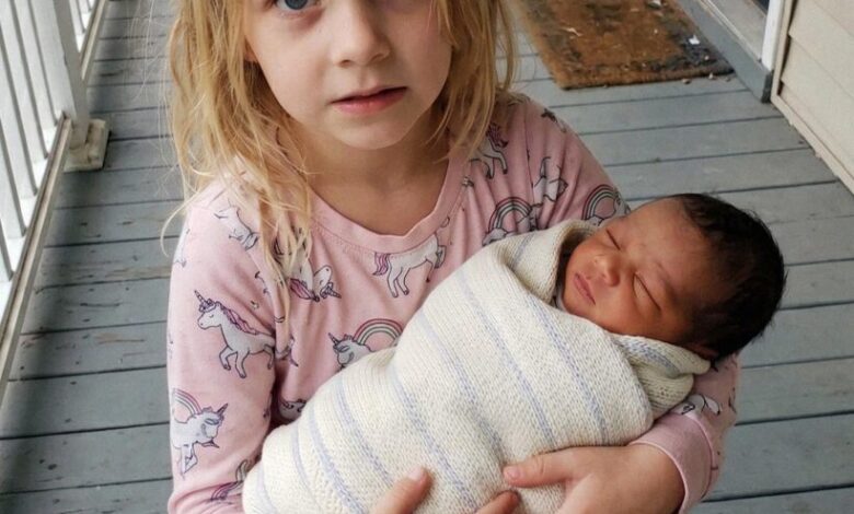 For a second, my mind refused to catch up. It was too surreal. My eight-year-old in duck-print pajamas, muddy feet, trembling… holding a newborn like she’d just picked him up off the ground.