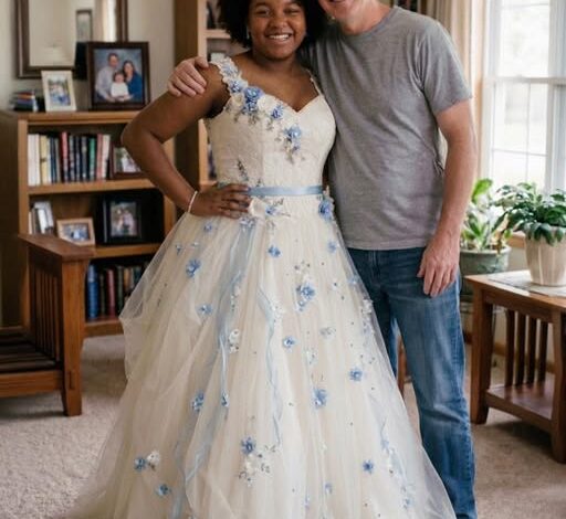My Father Sewed Me a Dress from My Late Mother’s Wedding Gown for Prom – My Teacher Laughed Until an Officer Walked In