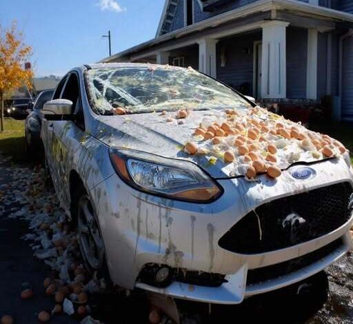 The morning before Halloween, I opened the front door and stopped dead. My car looked like it had come down with the world’s stickiest flu—egg yolk sliding down the windows, toilet paper streaming off the antenna like haunted bunting.