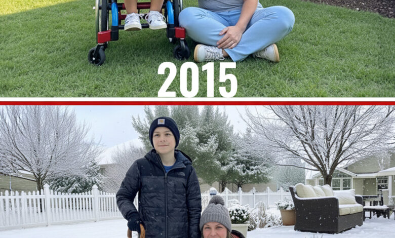 I turned just as he stepped out onto the porch. He was 15 now, taller, still slim, with the same bright eyes and determined stance. He leaned on his crutches, his expression wary as he looked at the woman who had once left him behind.