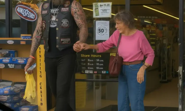I’m the biker who was standing behind her. Six-foot-three, 260 pounds, covered in tattoos, wearing my Demons MC vest. The kind of man mothers pull their children away from in parking lots.