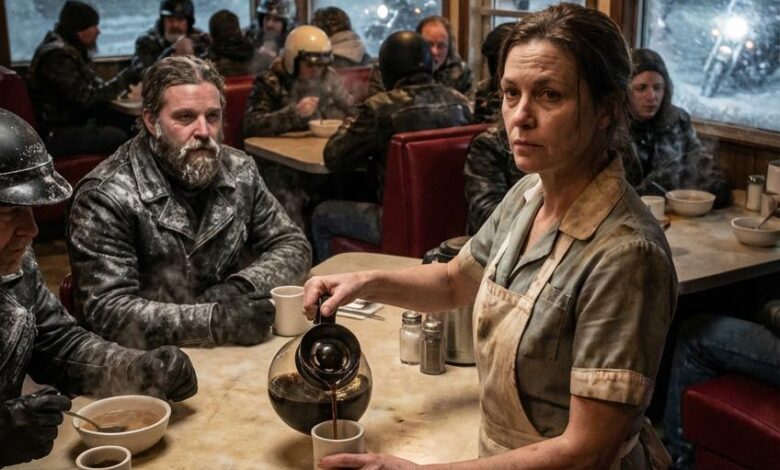 The wind battered the windows of North Ridge Diner like it had a personal grudge, shrieking through the cracks and rattling the loose signage out front until it sounded as if the building itself might finally surrender to the storm, and inside, where the heat struggled against the invading cold, Clara Hayes wiped down the same spotless counter for the third time because keeping her hands busy was easier than letting her thoughts wander where they always tried to go when the world went quiet.