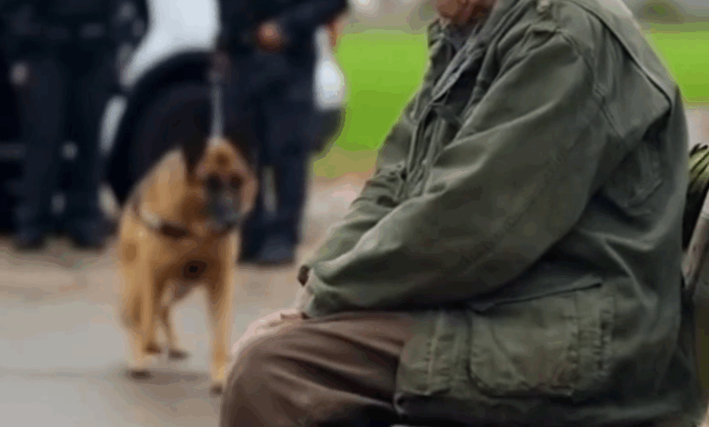 The elderly man’s hands trembled as he tried to explain. “It’s just some old clothes,” he said. “And… my memories.” But when he reached down to touch the bag, one officer instinctively drew back. The K9 handler gave a warning. “Step away from the bag, sir.” The man hesitated, then slowly lowered his hand.