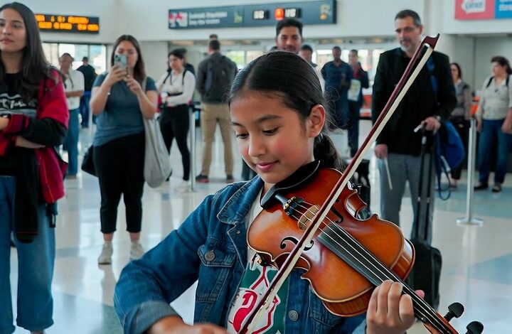 In a bustling airport filled with travelers rushing between gates, an unexpected moment of stillness took over as a young violinist began to play. What started as a casual performance quickly transformed into something far more captivating.