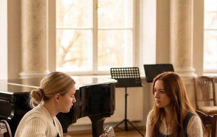 The scene was simple but powerful. A young blonde singer sat with her acoustic guitar, softly strumming while leaning into every lyric. Dressed in a cream off-shoulder cardigan, she looked calm, but her voice carried something heavier — like she wasn’t just performing, she was telling a story. Across from her sat another contestant, watching closely, completely drawn in.